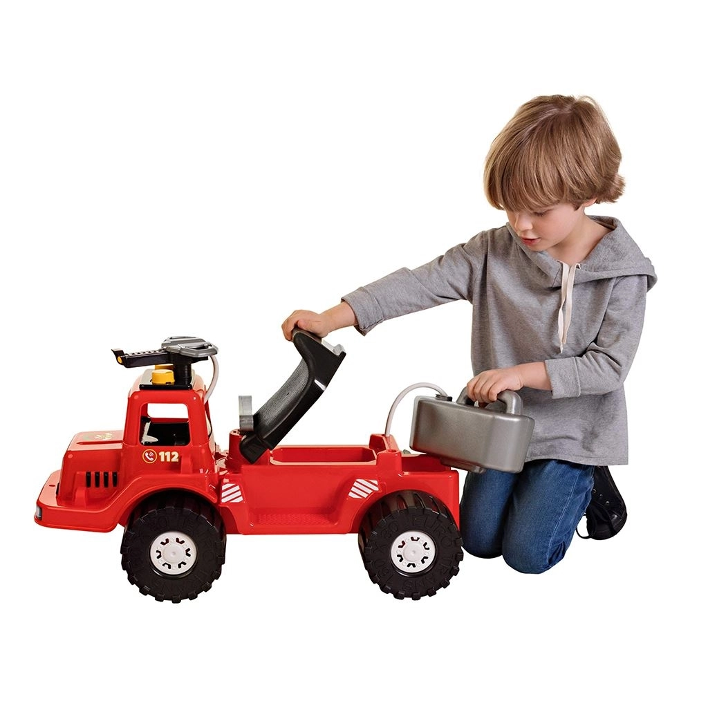 Das BAYO Feuerwehr-Rutscherfahrzeug macht jede Fahrt zur actionreichen Rettungsmission. Kinder können dank des praktischen Wassertanks und der drehbaren Kanone wirklich Wasser spritzen, während das großzügige Staufach unter dem Sitz kleine Spielsachen aufnimmt. Die langlebige Konstruktion aus hochwertigem Kunststoff und breite Räder sorgen für Stabilität und Fahrkomfort.