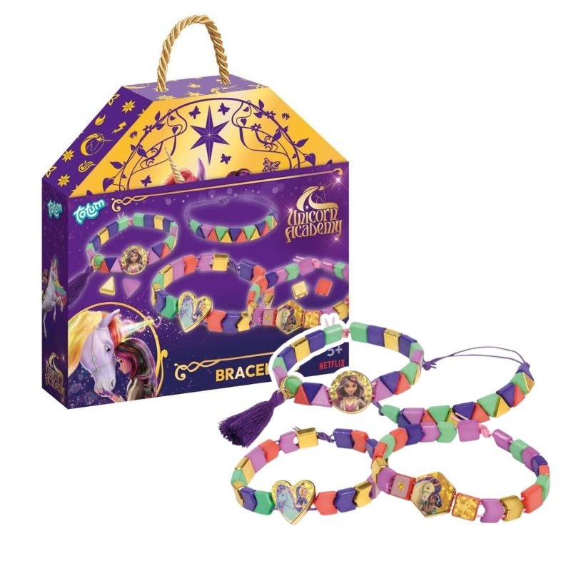 Die elastische Ausführung und leichte Materialien sorgen für angenehmen Tragekomfort. Armbänder mit Unicorn-Academy-Motiven werden zum Lieblingsaccessoire.
