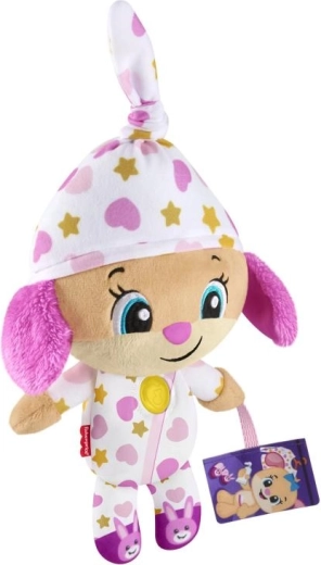Diese kuschelweiche, beruhigende Hündchen-Schwester im Pyjama mit Sternchen und Herzchen ist perfekt für Abendrituale. Das sanft leuchtende Herz aktiviert auf Knopfdruck beruhigende Musik, zarte Geräusche und liebevolle Sätze, die Kindern helfen, in den Ruhemodus zu finden.