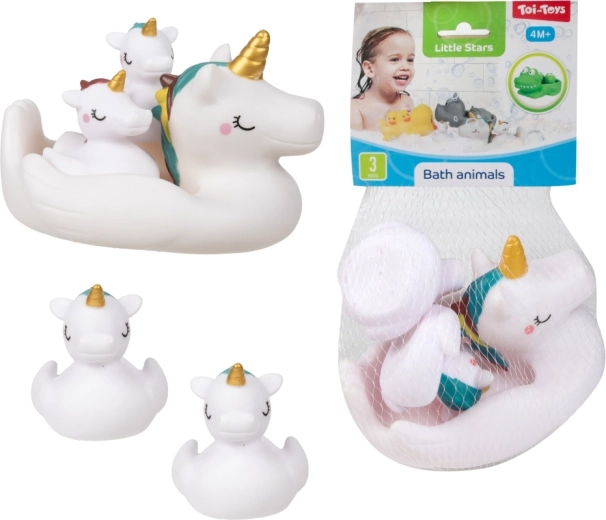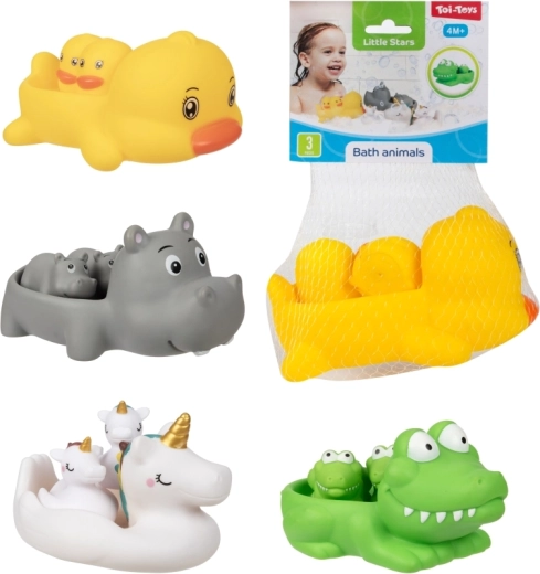 Dieses Set mit Badetierchen verwandelt jedes Bad in ein freudiges Abenteuer. Das größere schwimmende Tierchen (ca. 17 × 10 cm) dient als „Boot“, das zwei kleinere Tierchen (ca. 7 cm) mitnimmt. Das weiche Material ist angenehm anzufassen und sicher für Kleinkinder, während die leuchtenden Farben die visuelle Stimulation und die Entwicklung der Feinmotorik fördern.