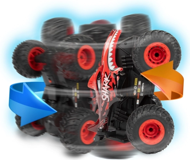 Zwei auffällige Designs (DINO oder Hai) und große Offroad-Reifen für besseren Grip und Stabilität beim Fahren und bei Rotationen.