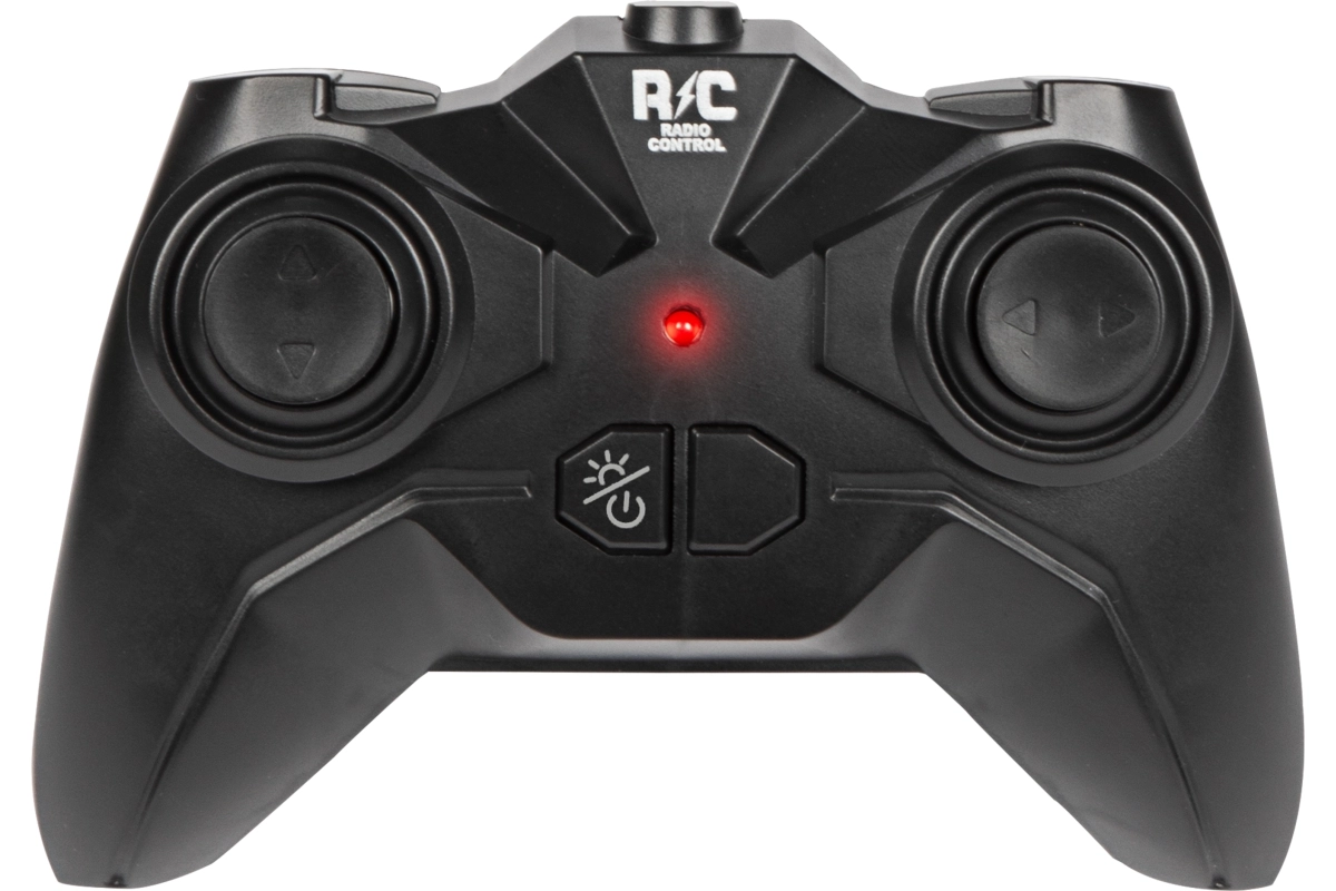 Ergonomischer Sender mit übersichtlichen Tasten für einfache Richtungssteuerung und Aktivierung spezieller Funktionen. Auch für kleine Kinderhände geeignet.