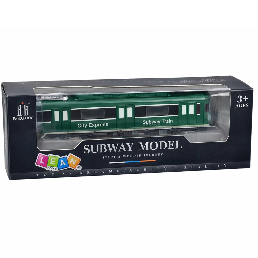 Entdecken Sie den detailreich gestalteten grünen U-Bahn-Zug CITY EXPRESS mit den Aufdrucken Subway Train und City Express. Dank der realistischen Details von Fenstern, Türen und Dach wirkt er modern und authentisch. Integrierte Lichter und Sounds bringen die Atmosphäre des echten Stadtverkehrs ins Spiel.