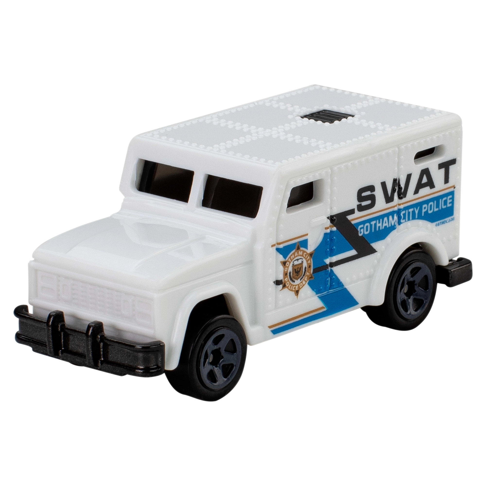 Im Set finden Sie unter anderem das BATMOBIL, den Gotham City Police SWAT‑Wagen sowie thematische Fahrzeuge der Schurken – perfekt für Spielszenen und zum Ausstellen.