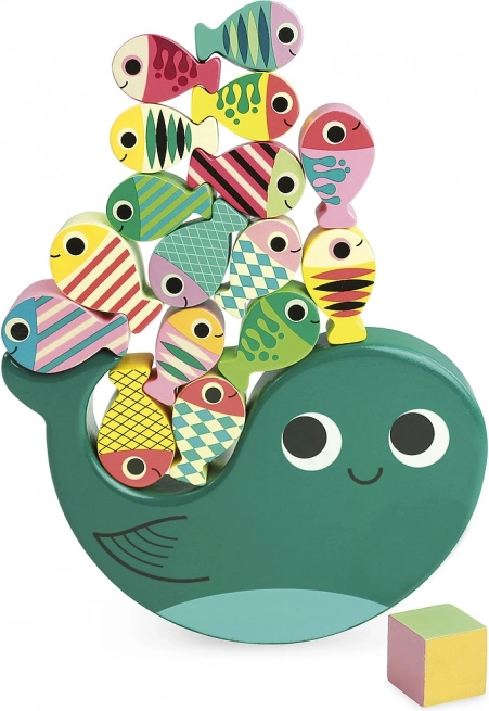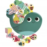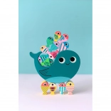 Genießen Sie eine unterhaltsame und lehrreiche Aktivität mit diesem motorischen Balancierspiel. Der hölzerne Wal mit bunten Fischen ist ideal zur Förderung der Feinmotorik und der Hand-Augen-Koordination.