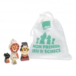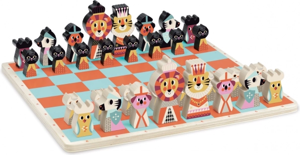 Die Schachfiguren sind als verschiedene Tiere illustriert, was das Spiel interessant und ansprechend für kleine Kinder macht.