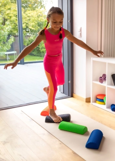 Die strukturierte Oberfläche mit Noppen bietet sensorisches Feedback bei Balanceübungen – geeignet für Kinder und Erwachsene beim Training zu Hause.
