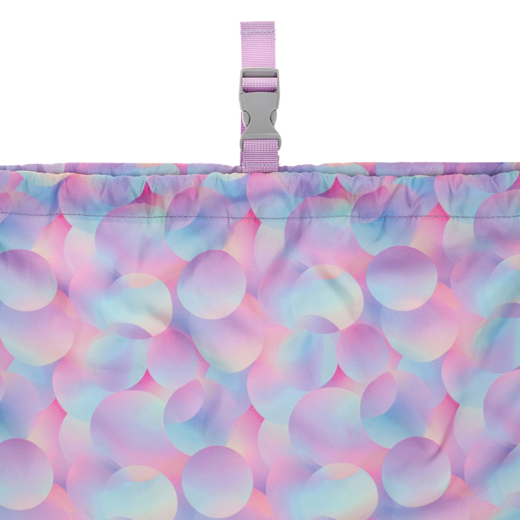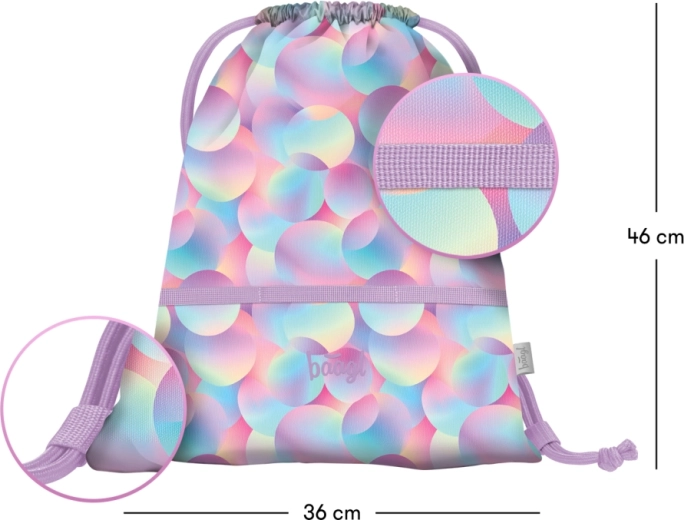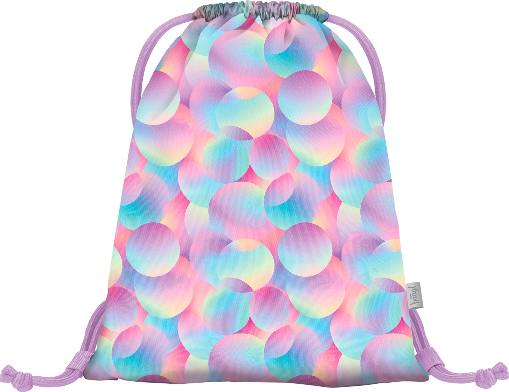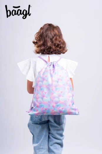 Der stylische Beutel Baagl Candy mit pastellfarbenem Bubble-Muster ist ein großartiges Accessoire für Kinder und Erwachsene. Dank des robusten Gewebes hält er dem täglichen Gebrauch stand und lässt sich leicht reinigen. Die doppelten Kordeln sorgen für schnelles Schließen und zugleich für bequemes Tragen wie ein Rucksack.