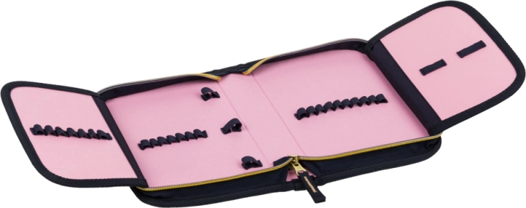Dank der Möglichkeit des vollständigen Aufklappens erhalten Sie perfekten Zugriff auf alle Fächer und Gummischlaufen, die auch für dreieckige Bunt- und Filzstifte geeignet sind. Das Mäppchen wird ohne Füllung geliefert, sodass Sie es genau nach Ihren Bedürfnissen bestücken können.