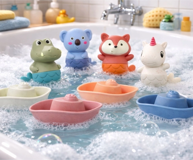 Die sicheren, weichen Gummitiere liegen perfekt in kleinen Kinderhänden, Plastikboote und Gummikähne fördern die Fantasie bei Wasserabenteuern in der Badewanne, im Pool und bei sommerlichen Spielen im Freien.