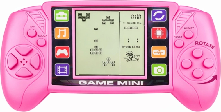 Die legendäre Logikspiel-Herausforderung im Taschenformat. Auf dem LCD-Display stapeln Sie fallende Formen zu vollständigen Reihen, sammeln Punkte, und mit steigendem Level erhöhen sich Tempo und Spannung. Dank ergonomischer Tasten und einfacher Handhabung ist die Konsole ideal für eine schnelle Ablenkung oder längere Spielsitzungen.