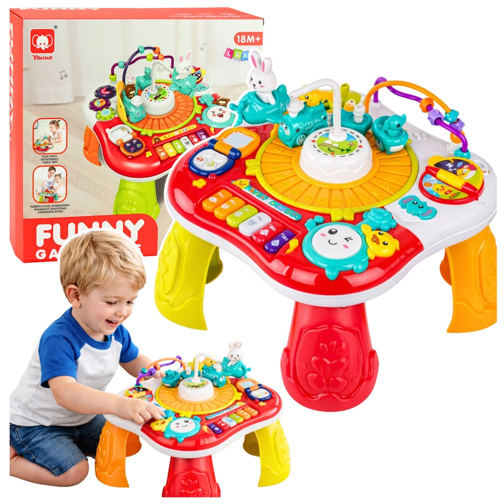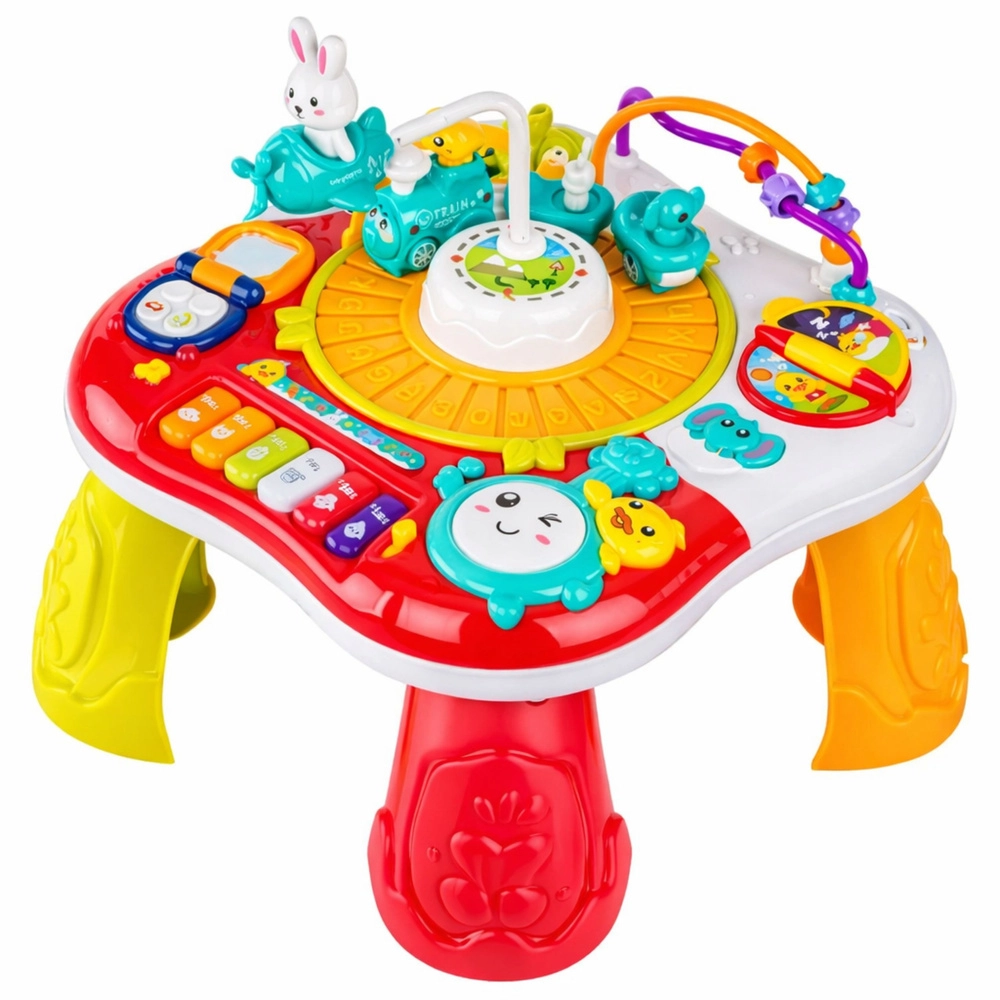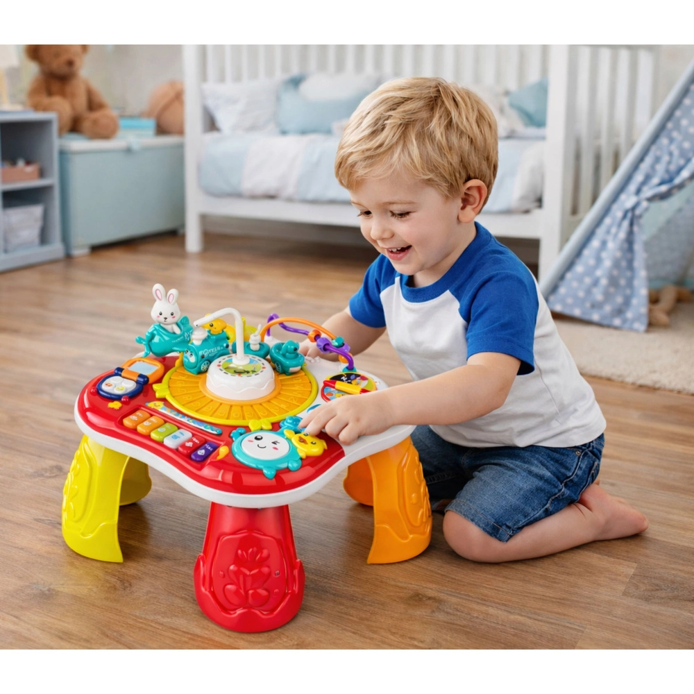 Der 2-in-1-Lernspieltisch unterstützt spielerisches, natürliches Lernen: Kinder entdecken Farben, Formen und Klänge, trainieren die Feinmotorik und die Hand-Auge-Koordination. Das Zentrum des Spielspaßes ist das bewegliche Häschen, das sich auf und ab bewegt, während das Mini-Klavier fröhliche Melodien abspielt und die Trommel lustige Geräusche erzeugt. Realistische Telefon- und Tastenfunktionen regen Fantasie und eigenständiges Entdecken an.