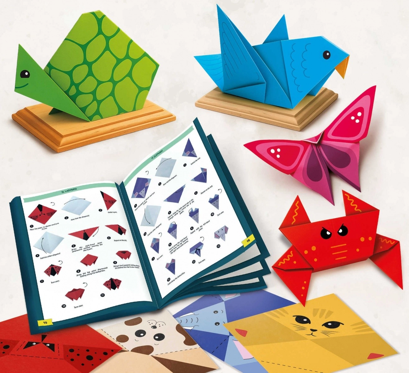 Dieses umfassende Origami-Set unterstützt Kinder beim systematischen Lernen – von einfachen Formen bis hin zu komplexeren 3D-Figuren von Tieren und Gegenständen. Jeder Bogen ist mit einem Symbol gekennzeichnet, um ihn leicht der passenden Anleitung zuzuordnen, sodass das Falten übersichtlich, flüssig und motivierend bleibt.
