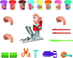 Mit diesem Play-Doh-Friseurset entstehen im Handumdrehen verrückte Frisuren. Setzen Sie die Figur in den Stuhl, drücken Sie, und aus dem Kopf „wächst“ eine bunte Mähne, die Sie weiter schneiden, kämmen und verzieren können. Mehrfarbige Knetmasse und lustiges Zubehör machen aus jedem Haarschnitt eine neue, fantasievolle Geschichte.