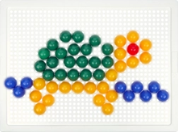 Die klassische LENA Hütchen-Mosaik bietet unendliche Legemöglichkeiten. Kinder können aus den bunten Steckstiften einfache bis ausgearbeitete Motive gestalten und dabei Konzentration, Hand-Auge-Koordination und Farbempfinden trainieren.