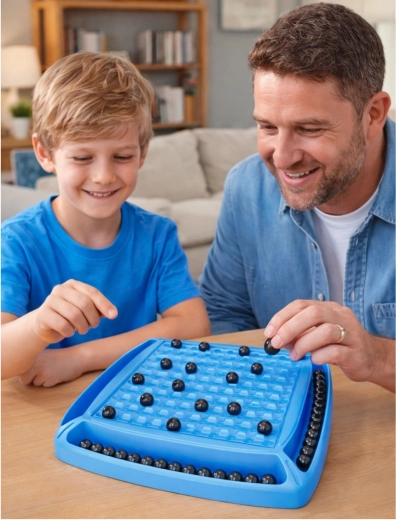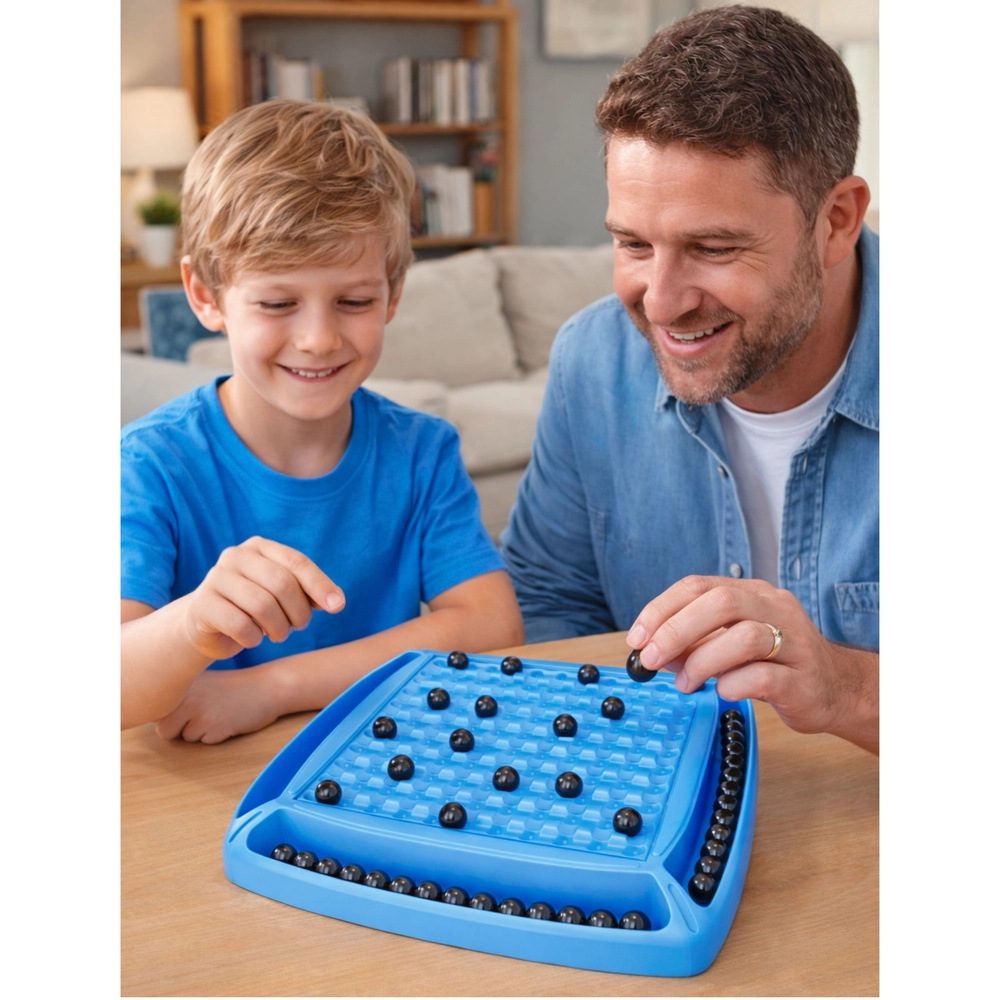 Die widerstandsfähige Kunststoffplatte mit speziell geformten Feldern hilft, die Kugeln stabil zu platzieren, und sorgt für Übersicht. Schnelle Regeln, kurze Spielzeiten und hohe Wiederspielbarkeit machen dieses Set zum perfekten Geschenk und zur Unterhaltung auf Reisen.