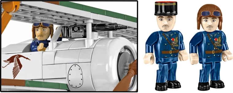 Enthält eine von Georges Guynemer inspirierte Pilotenfigur, inklusive zweier austauschbarer Kopfbedeckungen – Tschapka und Fliegermütze mit Brille – für vielfältige Spielszenarien.