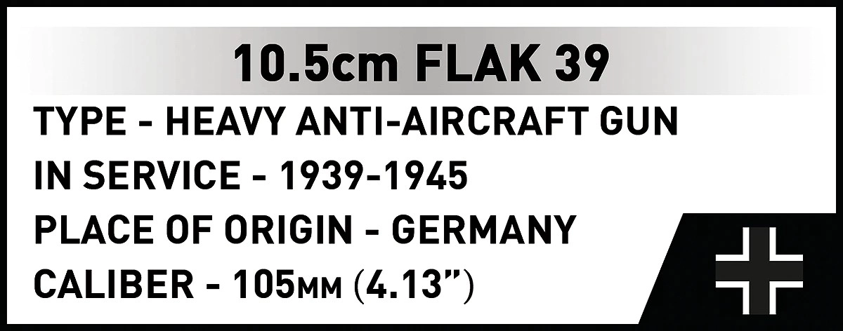 Bauen Sie das ikonische schwere Flugabwehrgeschütz 10,5 cm Flak 39 im Maßstab 1:35. Ein detailreiches Modell mit 339 Teilen, beweglichem Rohr, drehbarer Lafette und 2 Artilleristen‑Figuren für ein großartiges Bau- und Ausstellungserlebnis. Hochwertige dauerhafte Drucke sowie Zubehör wie eine Munitionskiste und ein Namensschild machen es zur perfekten Wahl für Geschichts- und Baustein-Fans.