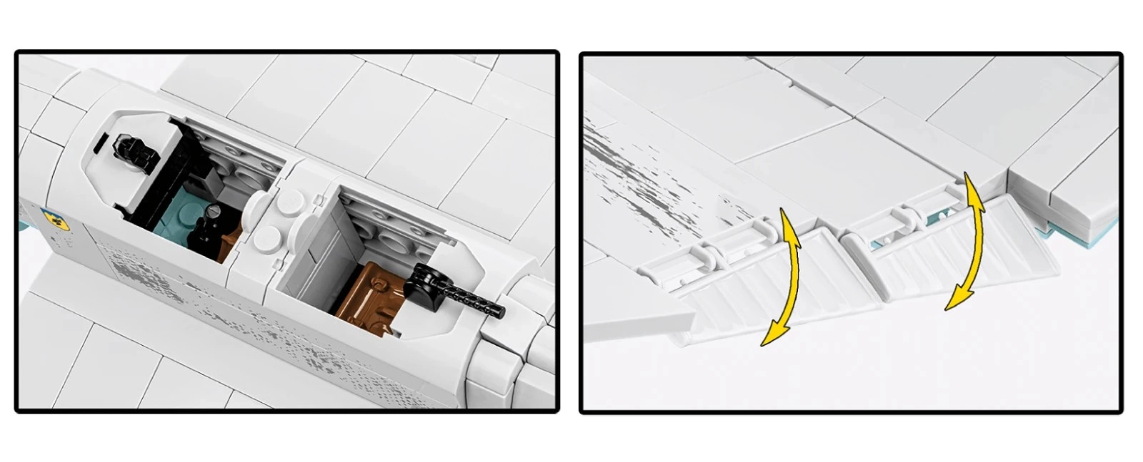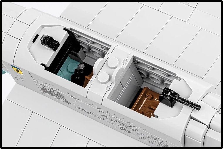 Der Bausatz legt Wert auf Spielwert und Ausstellung: Eine öffnende Kabine ermöglicht das Platzieren der Piloten im Inneren, der Propeller ist drehbar, die Räder mit Gummireifen rollen geschmeidig und bewegliche Klappen verleihen dem Modell Dynamik. Ein spezieller Ständer mit Flugzeugnamen unterstreicht den Sammlercharakter und ermöglicht die Präsentation „im Flug“.