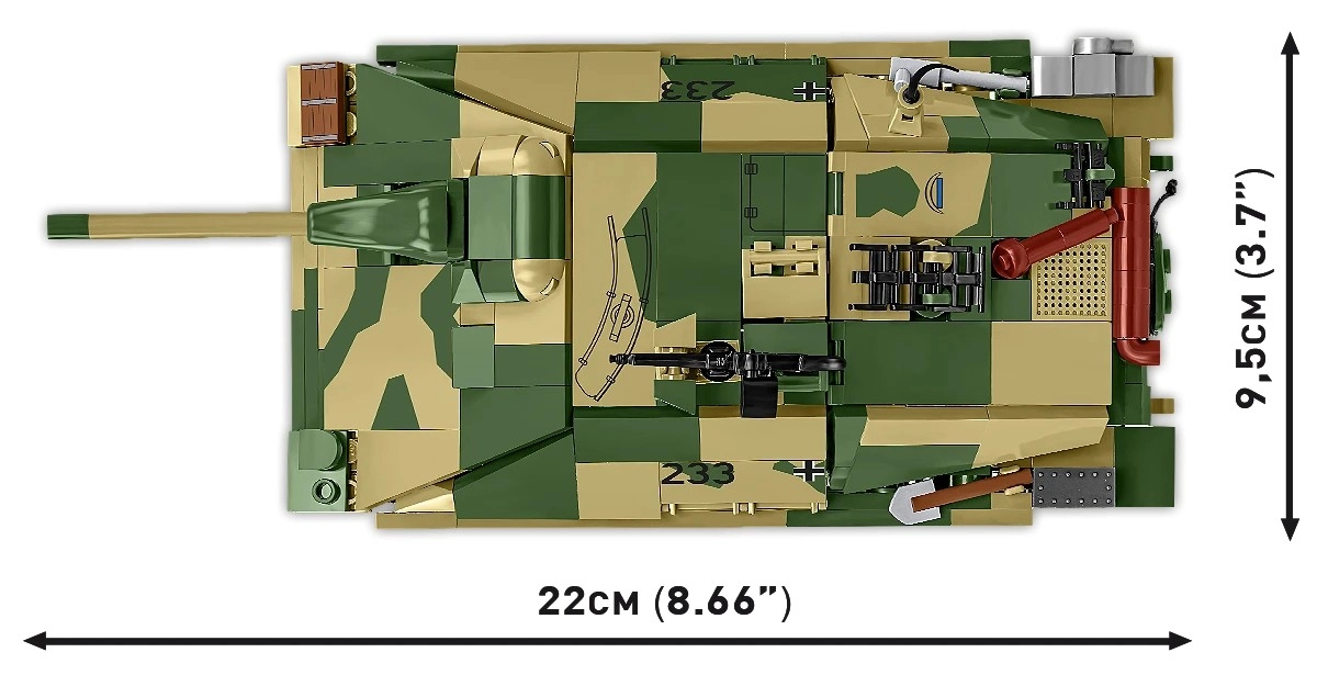 Das Modell Jagdpanzer 38(t) „Chwat“, auch als „Hetzer“ bekannt, bildet den erbeuteten Jagdpanzer originalgetreu ab, der zum Symbol für Einfallsreichtum und Mut wurde. Dank des Maßstabs 1:28 überzeugen Proportionen, Oberflächendetails und die präzise Silhouette. Ein abnehmbares Panzerteil legt den realistisch gestalteten Innenraum frei – Besatzungs- und Motorbereich – und die beweglichen Gummiketten sorgen für ein flüssiges Fahrverhalten beim Spielen.