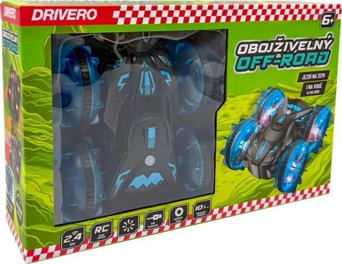 Der amphibische RC-Offroader DRIVERO ist die ideale Wahl für Spaß in jeder Umgebung – er meistert Pfützen, den Pool und auch anspruchsvolleres Gelände im Garten. Die intuitive Steuerung und widerstandsfähige Materialien garantieren unbeschwerte Fahrten, während transparente Räder mit LED-Beleuchtung in der Dämmerung eine großartige Lichtshow erzeugen.