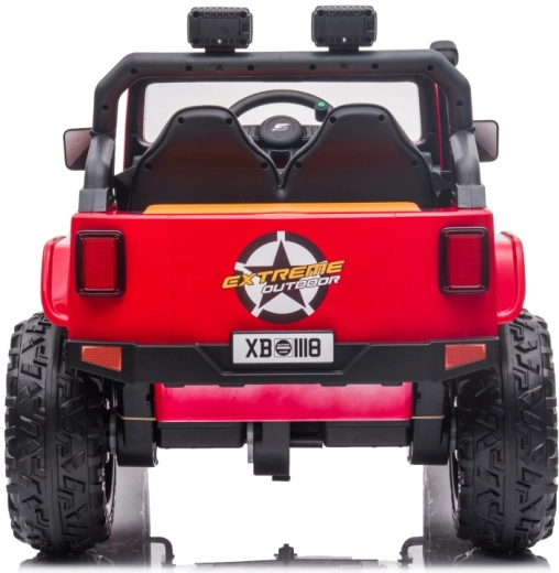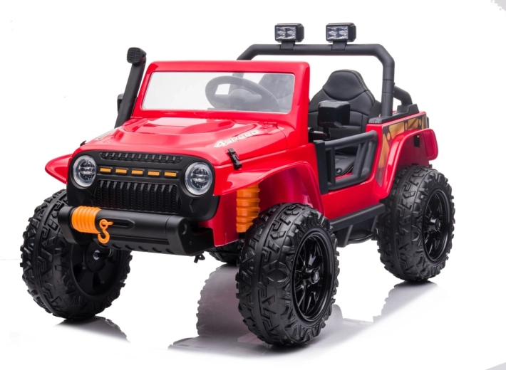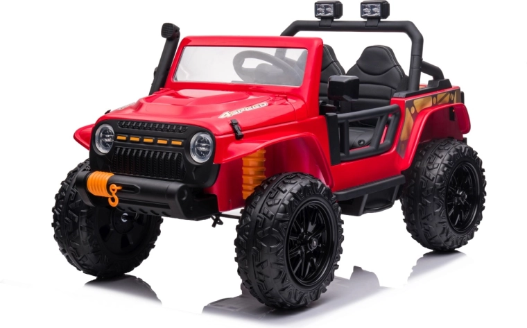 Der Jeep Monster 24V ist ein elektrisches Kinder-Geländefahrzeug, das Abenteuer im Garten wie auch auf festen Flächen meistert. Vier kräftige Motoren 4×200 W in Kombination mit einem 24 V 7 Ah-Akku bieten starken Zug und eine ruhige Fahrt. Große EVA-Schaumräder 30×12 cm dämpfen Bodenunebenheiten, die hintere Federung steigert den Komfort. Eltern schätzen die 2,4-GHz-Fernbedienung mit drei Geschwindigkeiten und Not-Stop-Taste.