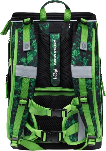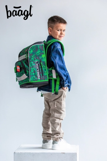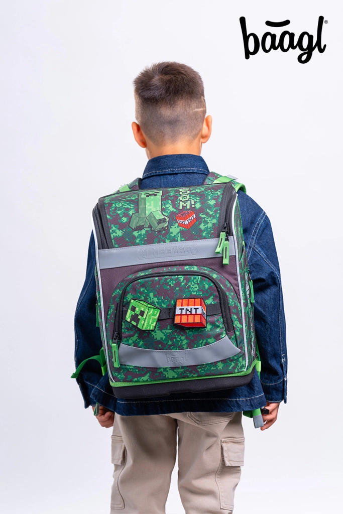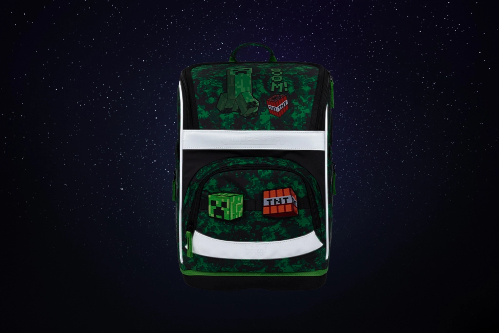 Das gesamte Set ist mit MINECRAFT-Gaming-Motiven in Pixel-Camouflage und reflektierenden Elementen für bessere Sichtbarkeit gestaltet. YKK-Reißverschlüsse gewährleisten Langlebigkeit und ein reibungsloses Öffnen, während recycelte, wasserabweisende Materialien dem anspruchsvollen Schulalltag standhalten.