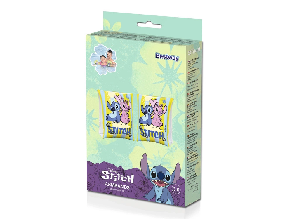 Bunte aufblasbare Schwimmflügel mit DISNEY Lilo & STITCH-Motiv helfen Kindern, Sicherheit im Wasser zu gewinnen und an der Oberfläche zu bleiben. Dank leichtem PVC, bequemem Sitz am Arm und fröhlichem Design genießen kleine Schwimmer sichereren Spaß im Pool und am See. Ideal für Kinder von 3–6 Jahren.