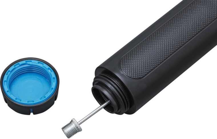 Im Lieferumfang enthalten sind 3 Ballnadeln, 2 Adapter für verschiedene Ventile, ein flexibler Schlauch sowie ein Manometer zur Druckkontrolle im Bereich von 0–12 psi. Pro Hub liefert sie ein Volumen von 0,055 l und sorgt so für schnelles und effizientes Aufpumpen ohne Strom.