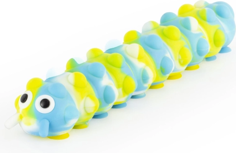Die Raupe besteht aus angenehm weichem, flexiblem Silikon, das man sorgenfrei drücken und dehnen kann. Ideal zum Stressabbau und für sensorische Stimulation.