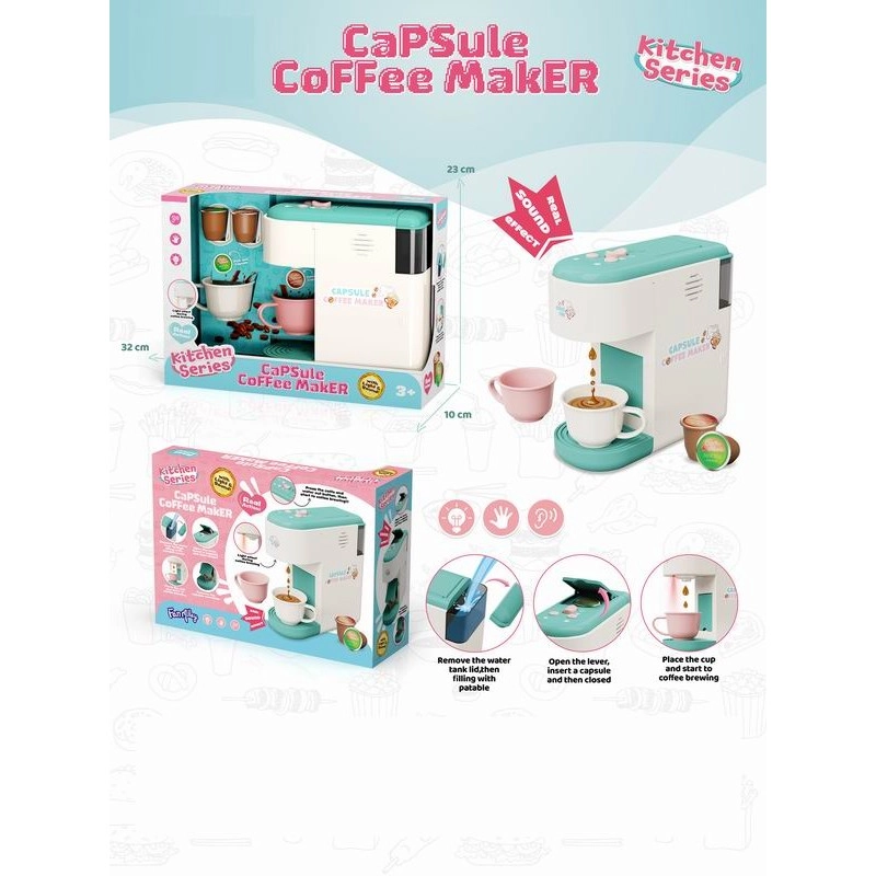 Entdecke die Welt des Cafés direkt im Kinderzimmer. Diese Kinder-Kaffeemaschine bringt realistisches Spielen ins Haus: Kinder können ihren Lieblingskaffee „zubereiten“, Familie und Freunde bedienen und ihrer Fantasie freien Lauf lassen. Dank der kompakten Maße ist sie leicht zu verstauen und zu transportieren.