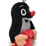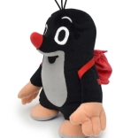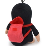 Der Maulwurf ist mit einem roten Rucksack ausgestattet, der die Verspieltheit und Interaktivität des Spielzeugs erhöht.