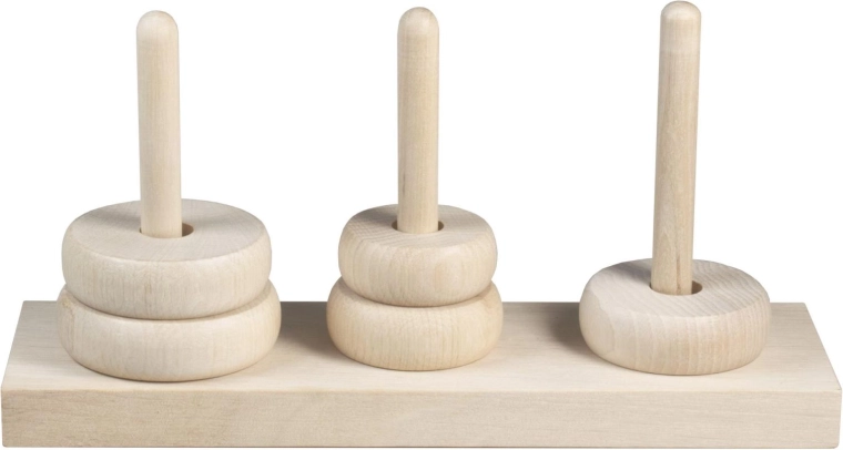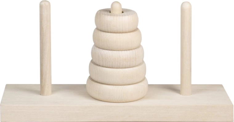 Der Turm von Hanoi ist ein klassisches mathematisches Puzzle aus dem Jahr 1883, das Generationen von Spielenden begeistert und lehrt. Ziel ist es, alle Ringe von einem Stab auf einen anderen zu versetzen, nach einfachen Regeln – es darf immer nur ein Ring bewegt werden, und ein größerer Ring darf niemals auf einem kleineren liegen. Diese Holzversion bietet eine natürliche Optik, eine feste Basis und glatte Ringe für angenehmes Handling.
