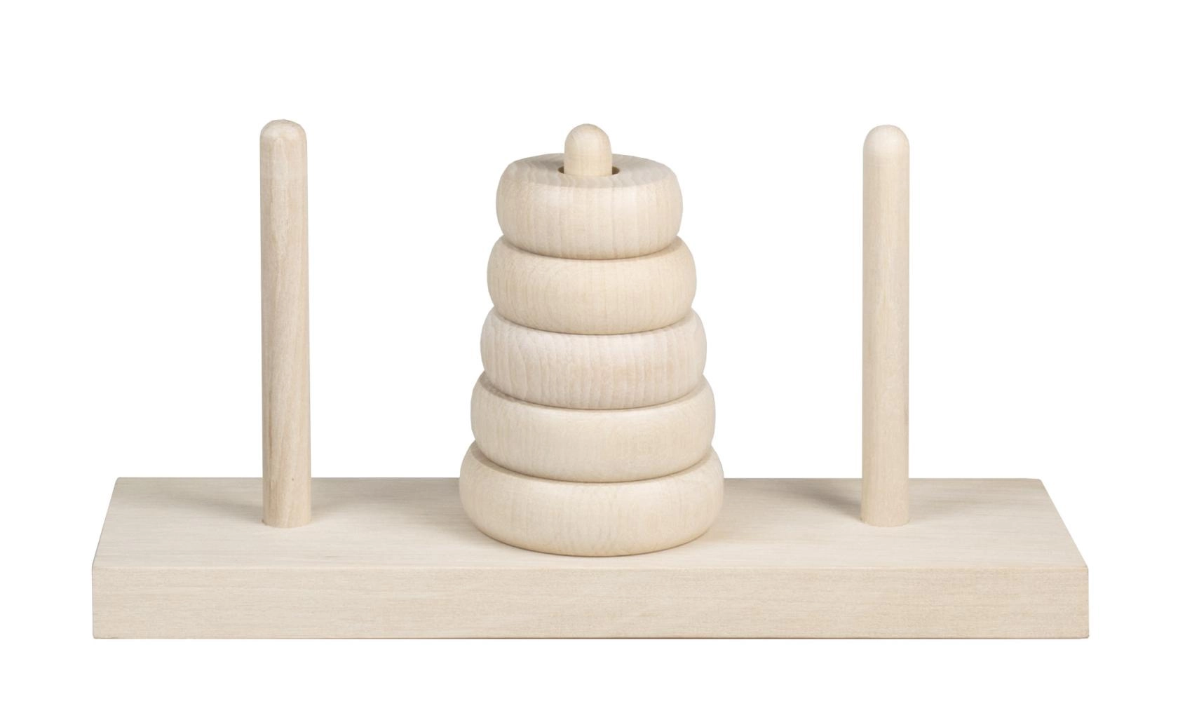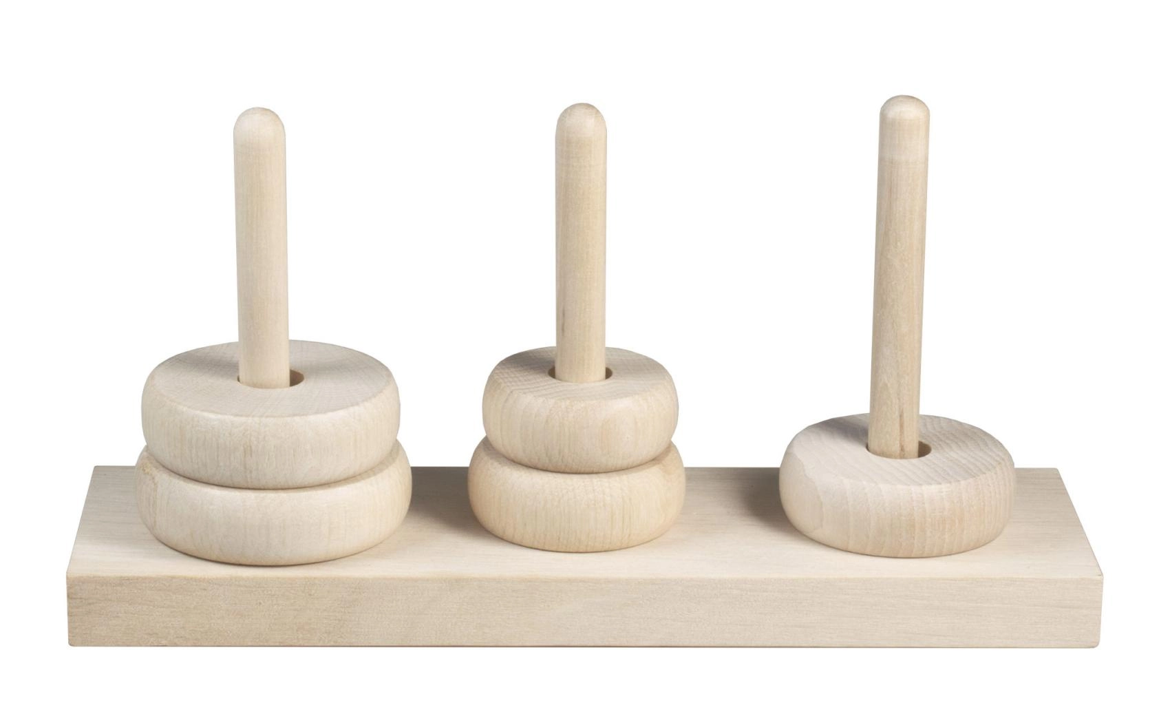 Glatte Ringe, abgerundete Kanten und eine stabile Basis aus Naturholz für bequemes und sicheres Spielen.