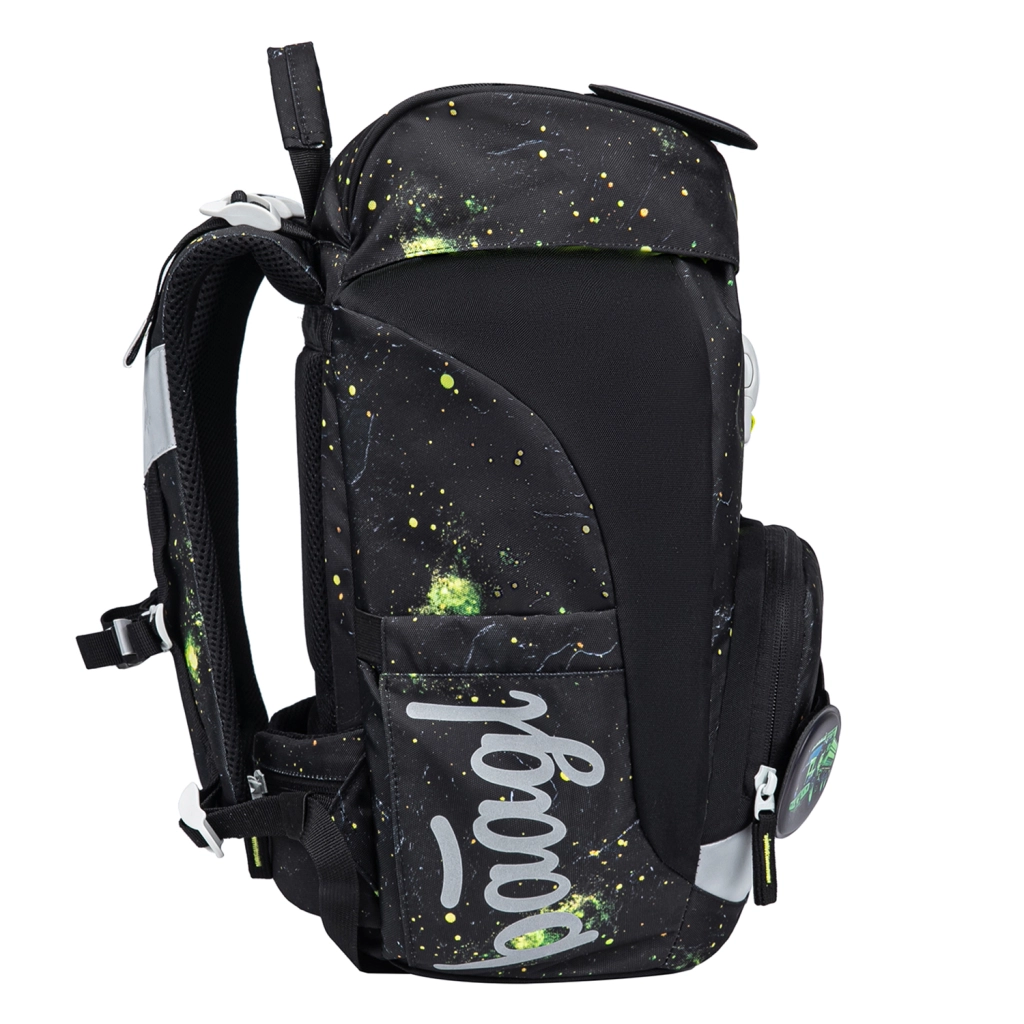 Das gesamte Set besteht aus recycelten, wasserabweisenden Materialien und ist mit reflektierenden Elementen für mehr Sicherheit in der Dämmerung ausgestattet. Das Design des Rucksacks lässt sich mithilfe abnehmbarer Badges verändern, die Kinder lieben werden. Die Produkte wurden in einem akkreditierten Labor getestet und tragen die Global Recycled Standard (GRS)-Zertifizierung.