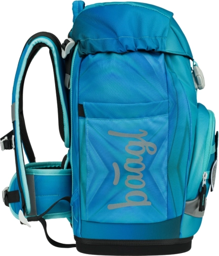 Leichter und ergonomischer Schulrucksack BAAGL Airy Plus Butterfly für Kinder ab der 1. Klasse mit wachsendem Rückensystem Grow, Gewicht unter 1,2 kg, verstärktem Boden und reflektierenden Elementen für mehr Sicherheit. Hergestellt aus recyceltem, wasserabweisendem Material mit GRS-Zertifizierung, verfügt er über eine Thermotasche für Pausenbrot, eine clevere Aufteilung und einen magnetischen Deckelverschluss für einfaches Handling.