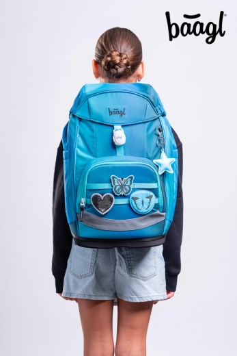 Das Schulset BAAGL Airy Plus Butterfly verbindet Komfort, Sicherheit und ein verspieltes Design mit Schmetterlingen in türkisfarbenen Tönen. Der Rucksack mit verstellbarem Grow-Rückensystem passt sich der Statur des Kindes an und sorgt dank atmungsaktiver Polsterung an den Schultergurten, dem Brustgurt und dem abnehmbaren Hüftgurt für eine gesunde Körperhaltung – auch im täglichen Gebrauch. Der Deckel mit magnetischem Verschluss schnappt von selbst zu und erleichtert die Handhabung selbst für Erstklässler.