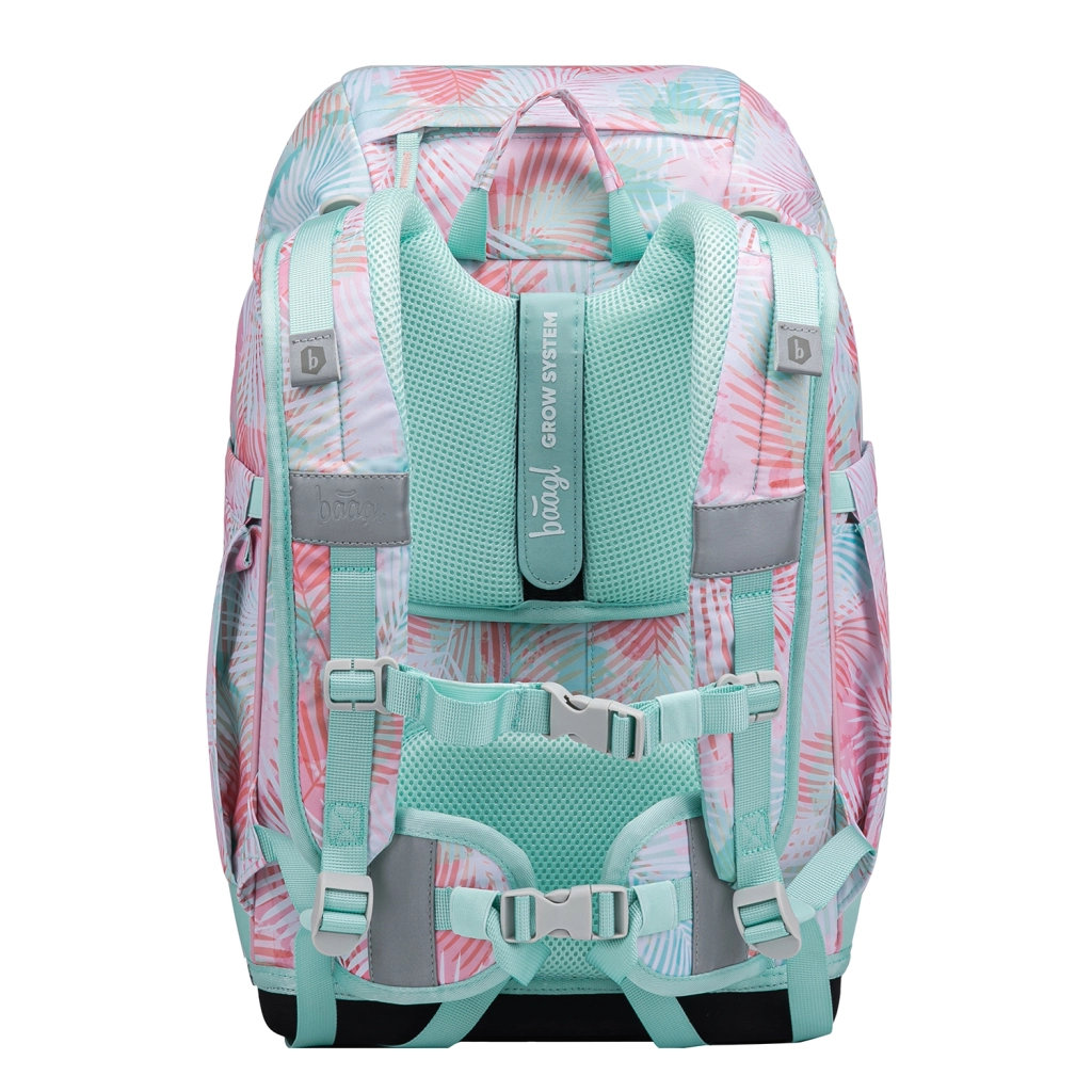 Das Schulset Airy Plus Sunset ist so konzipiert, dass es Kindern maximalen Komfort, Ordnung und Sicherheit bietet. Der leichte Rucksack unter 1,2 kg mit festem Boden hat einen anatomisch geformten Rücken mit integrierter Aluminiumverstärkung und ein wachsendes Rückensystem Grow in drei Größen. Verstellbare Schultergurte mit atmungsaktiver Polsterung, Brustgurt und abnehmbarer Hüftgurt sorgen für eine korrekte Lastverteilung.