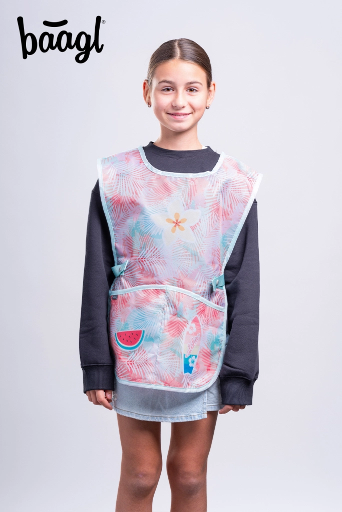 Praktische Schürze mit großer Fronttasche und seitlicher Schnürung schützt Kleidung beim Kunstunterricht, Kochen und in Kreativwerkstätten.