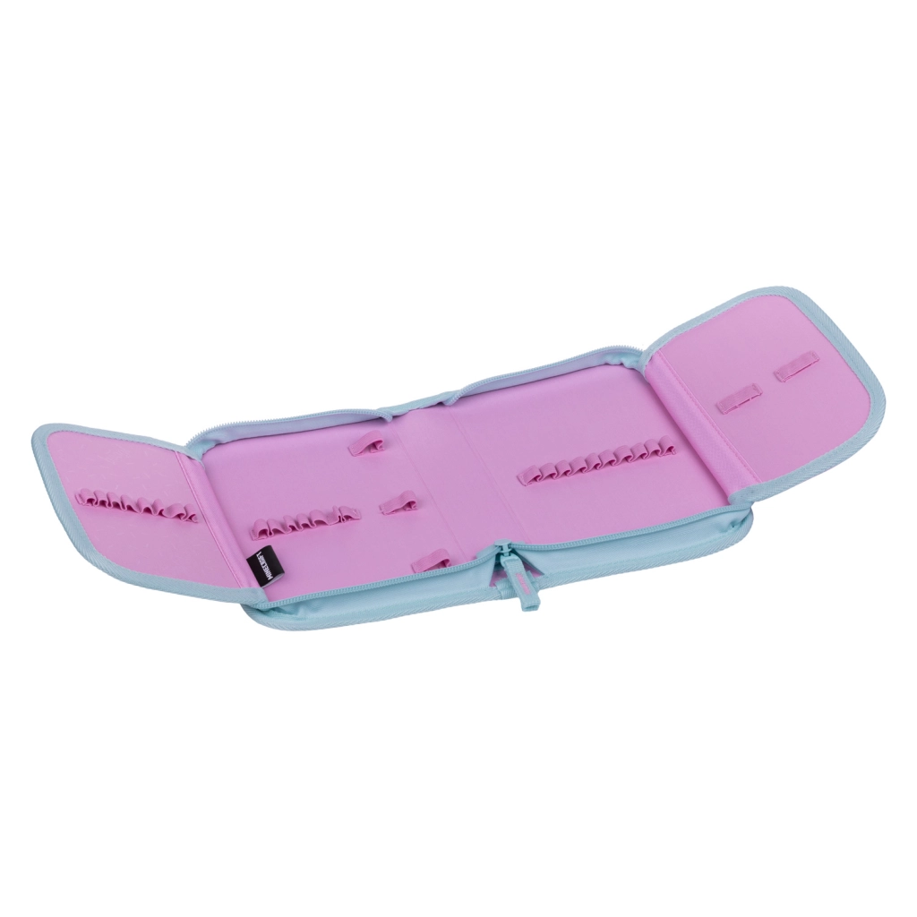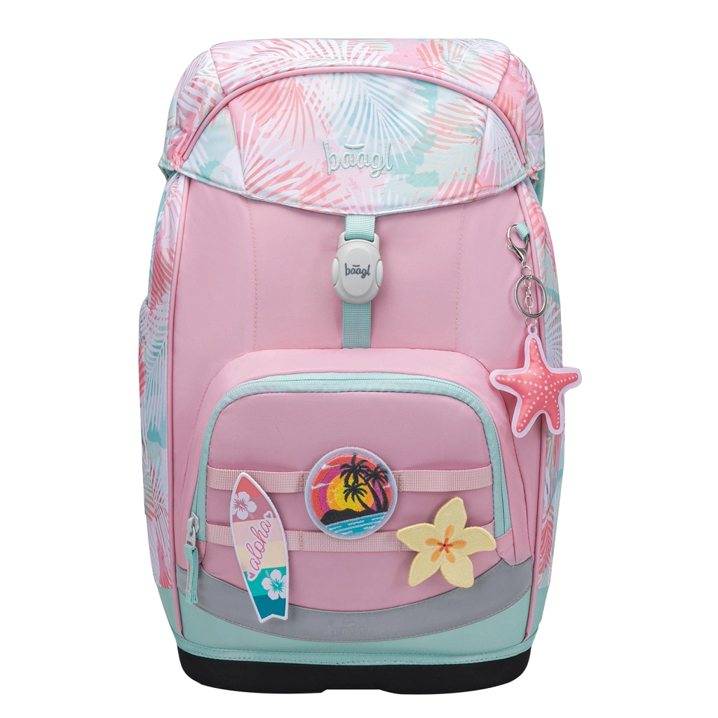 Durchdachte Organisation umfasst das Hauptfach mit Organizer, Schutzmappen für Hefte, einen praktischen Deckel mit Reißverschlusstasche und eine vordere Thermotasche für Snacks. Der moderne Look wird durch auswechselbare Abzeichen (Baaglies) und markante reflektierende Elemente ergänzt. Das einlagige Federmäppchen mit Markenreißverschluss YKK lässt sich komplett aufklappen, verfügt über ein kleines Fach für Kleinigkeiten, ein Stundenplanfenster und feste Gummischlaufen auch für dreikantige Buntstifte (wird ohne Inhalt geliefert). Der Beutel mit Kordelzug ist ideal für Hausschuhe oder Sport, die Schürze schützt beim Kunstunterricht und die Geldbörse sorgt dafür, dass das Taschengeld sicher bleibt.