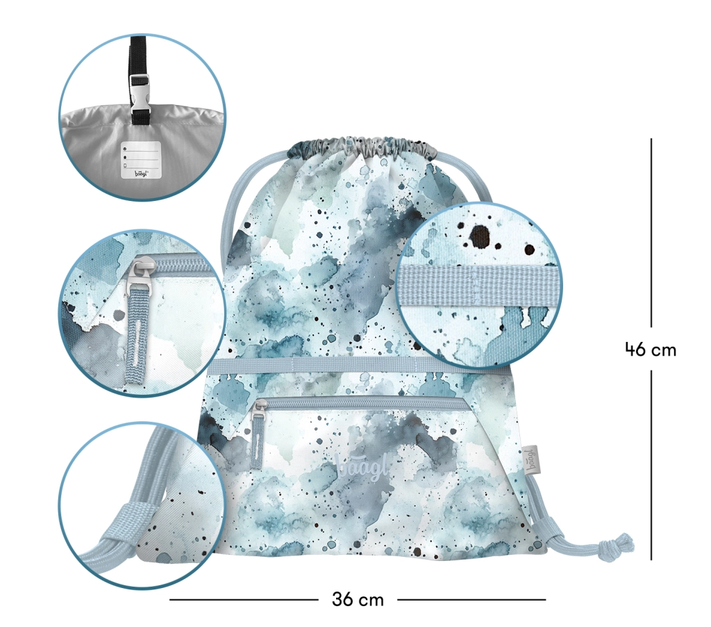 Der Beutel mit Tasche Baagl Polar GRS ist die ideale Wahl für die Schule, den Sport und Freizeitaktivitäten. Die vordere Reißverschlusstasche bietet Platz für Kleinigkeiten, während das Hauptfach bequem Hausschuhe, Sportausrüstung oder tägliche Essentials aufnimmt.