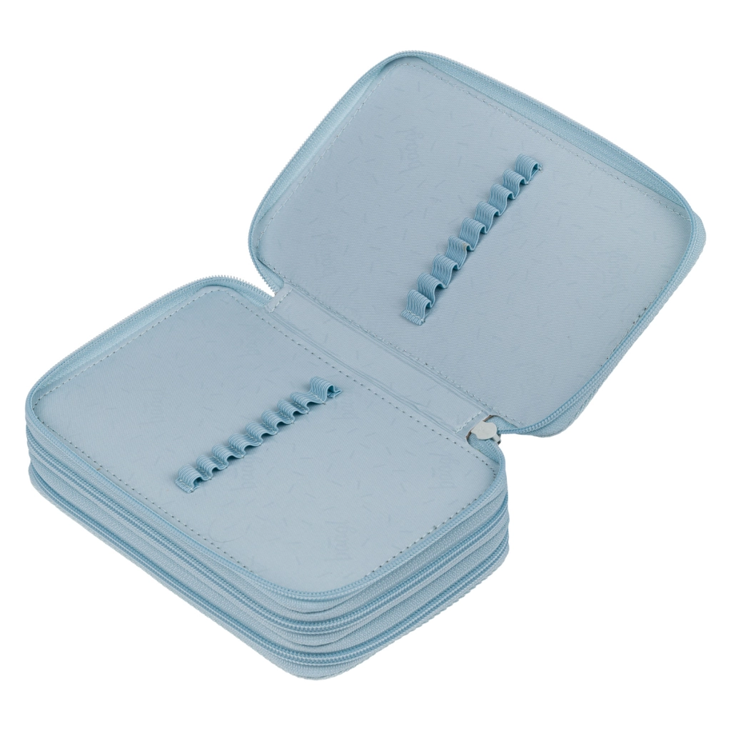 Das durchdachte Innenlayout mit flexiblen Gummischlaufen nimmt dünne wie dicke Schreibutensilien sicher auf – von Buntstiften und Markern bis hin zu Kugelschreibern, Linealen oder kleinem Zubehör. Der verstärkte Rücken erleichtert das Schließen, der umlaufende Reißverschluss sorgt für eine sichere Aufbewahrung des Inhalts, und abgerundete Ecken schützen das Mäppchen und seine Ausstattung.