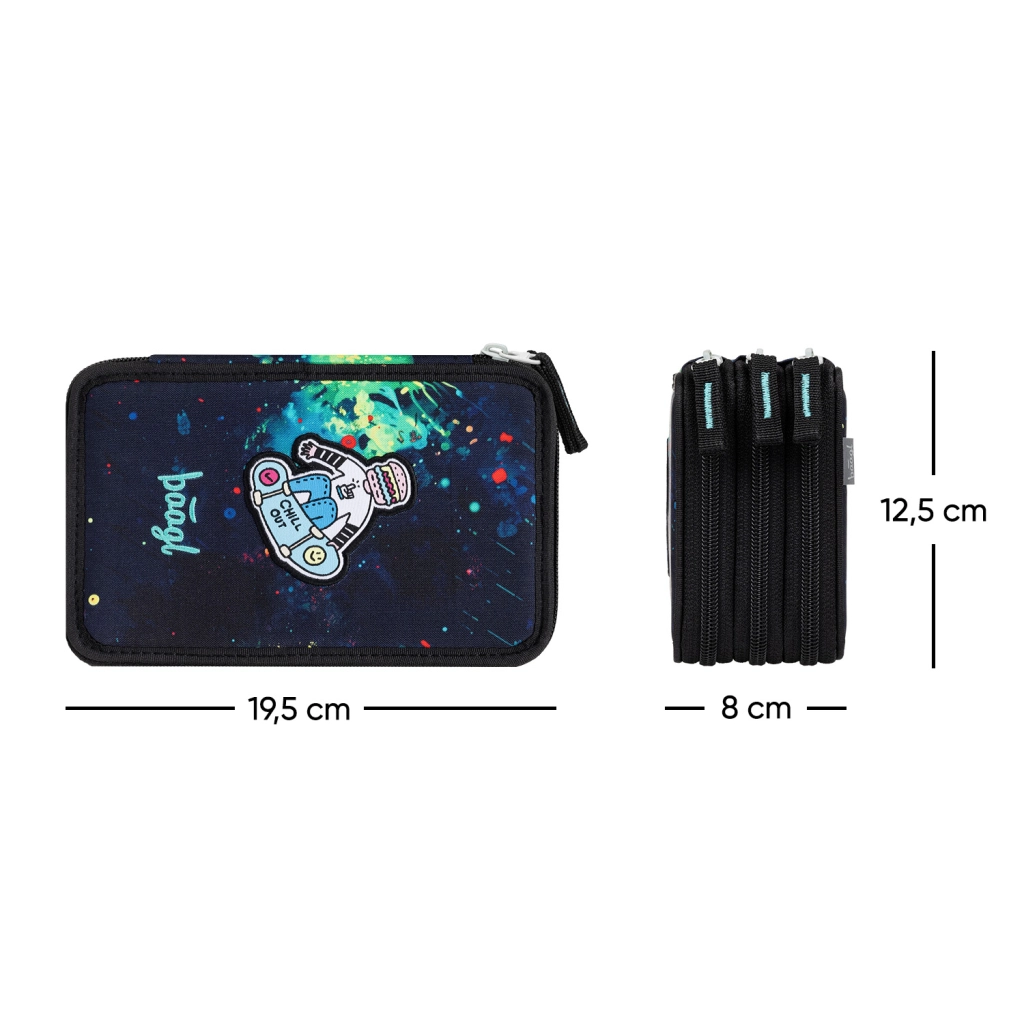 Suchen Sie ein geräumiges und langlebiges Federmäppchen für die Schule? Das dreistöckige Federmäppchen Baagl Chill GRS bietet ausreichend Platz für Buntstifte, Filzstifte, Stifte und weiteres Zubehör. Die Gummischlaufen sind so gestaltet, dass sie auch stärkere Schreibgeräte aufnehmen, und der verstärkte Rücken erleichtert die tägliche Handhabung beim Schließen.