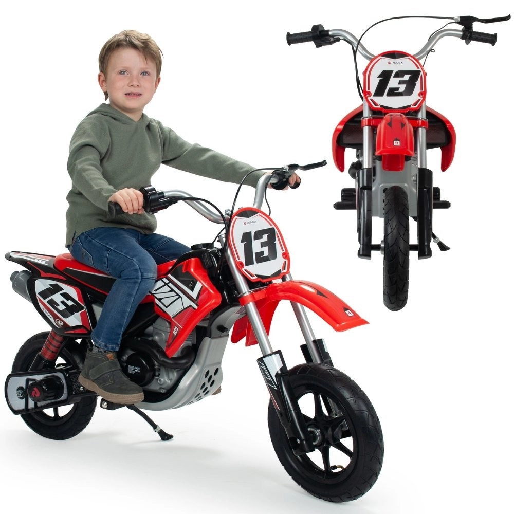 Das sportliche Kinder-Motorrad INJUSA 24V ist für die ersten großen Abenteuer im Gelände und im Hof konzipiert. Dank der leistungsstarken 24V Batterie, der aufpumpbaren Räder und der Metallkonstruktion ist die Fahrt sanft, stabil und bequem. Die realistische Bedienung mit Drehgasgriff und Trommelbremse gibt Kindern Sicherheit und Kontrolle über die Geschwindigkeit.