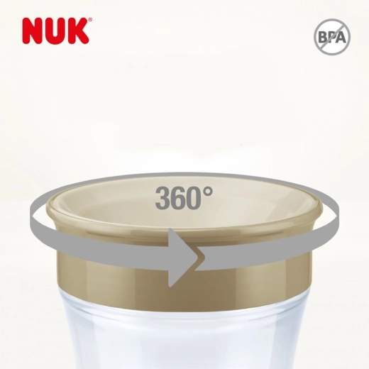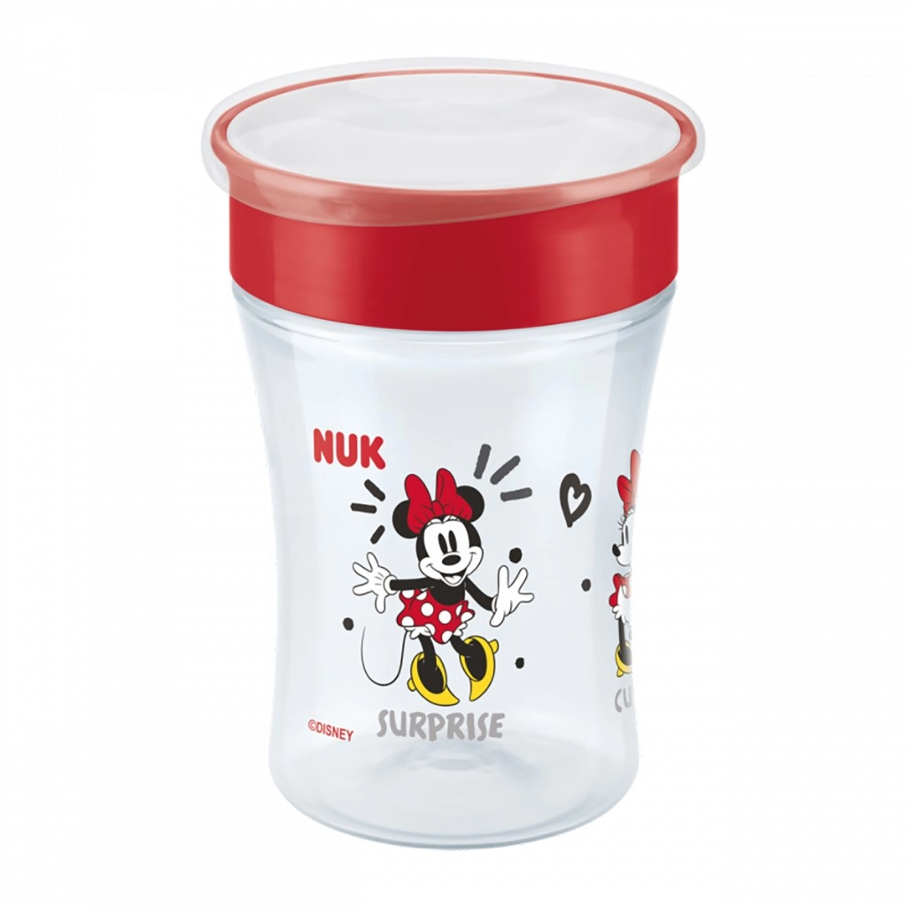 Der NUK Magic Cup Minnie ist ein cleverer Trinklernbecher, der Kindern das Trinken vom normalen Becherrand ohne Henkel beibringt. Die Flüssigkeit bleibt dank der dichtenden Silikonscheibe sicher im Inneren und wird erst beim Saugen am Rand freigegeben. Der 360°-Rand ermöglicht Trinken von jeder Seite – natürlich und intuitiv.