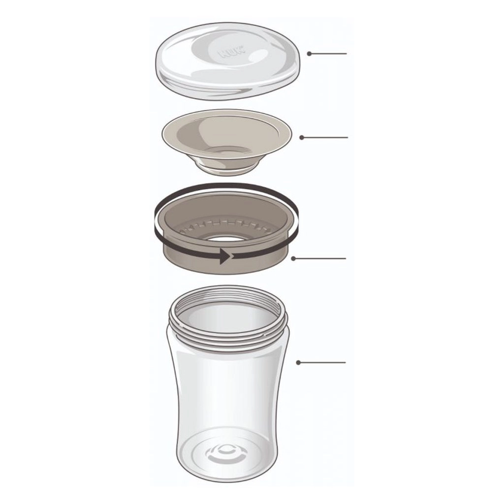 Das Kind kann von jeder Seite des Bechers trinken – das Trinkenlernen ist intuitiv und ohne Henkel wie bei einem normalen Becher.