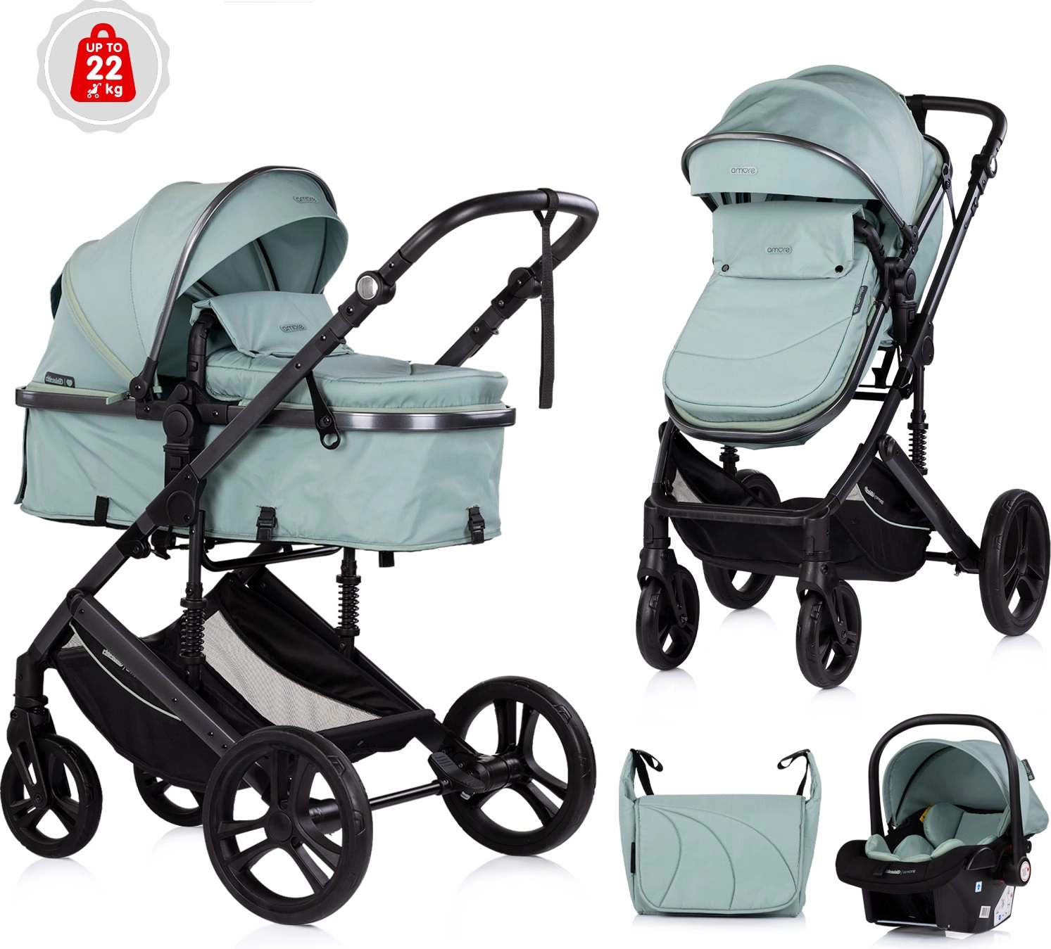 Der CHIPOLINO AMORE 2-in-1 ist eine praktische Lösung für Neugeborene und größere Kinder bis 22 kg. Wechseln Sie einfach zwischen der Babywanne für Säuglinge und dem Sportsitz für Kleinkinder. Die leichte und stabile Konstruktion mit integrierter Federung meistert Stadt und unebenere Wege, während das große Verdeck mit abnehmbarer Sonnenblende Ihr Kind bei jedem Wetter schützt.