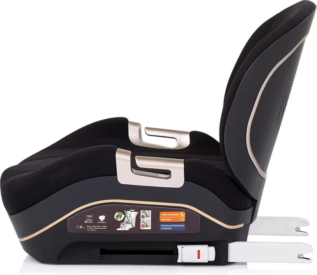 Integrierte Gurtführungen unterstützen die korrekte Führung des Sicherheitsgurtes und verringern so das Risiko einer Fehlbedienung. Grüne Sicherheitsindikatoren für ISOFIX bestätigen visuell die korrekte Verriegelung – einfach einklicken und losfahren. Der elegante Bezug mit goldenen/silbernen Details ergänzt das Interieur des Fahrzeugs, und die hochwertige Verarbeitung erleichtert den Wechsel zwischen Fahrzeugen ohne Sicherheitskompromisse.