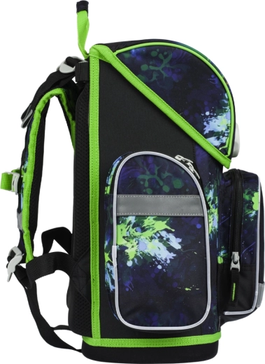 Im Inneren befindet sich ein transparentes Fach mit Stundenplan und ein praktischer Organizer zur gleichmäßigen Gewichtsverteilung. Eine isolierte Fronttasche sowie zwei Seitentaschen, ideal für Trinkflaschen, fehlen nicht. Die leichte, stabile Konstruktion mit widerstandsfähigem Boden behält die Form, das wasserabweisende Material schützt den Inhalt und reflektierende Elemente erhöhen die Sichtbarkeit. Die ERGO-Ranzen sind getestet und zertifiziert in einem akkreditierten Prüflabor.