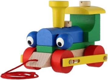 Diese zwinkernde Zuglok zum Ziehen aus hochwertigem Holz bringt Kindern Freude an Bewegung und erste Erfahrungen mit dem Montieren. Dank des beiliegenden Holzschraubendrehers trainieren kleine Konstrukteure ihre Geschicklichkeit und ihr logisches Denken, während sie spielen.